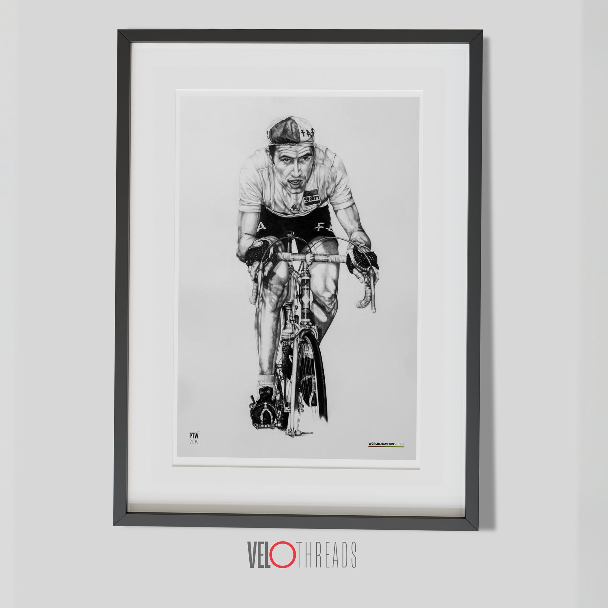 With only 400 prints available worldwide, each piece is individually numbered and signed by the artist, making it a must-have for cycling enthusiasts and art collectors who wish to own a tribute to the greatest cyclist of all time.